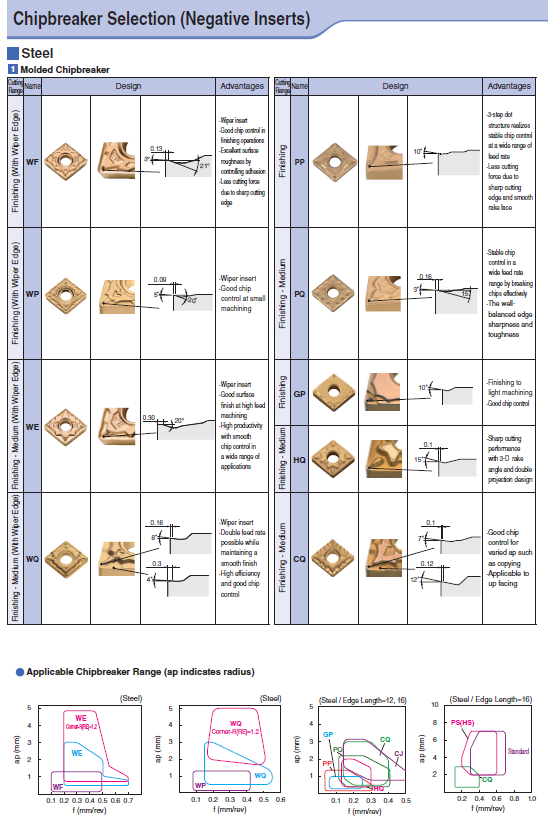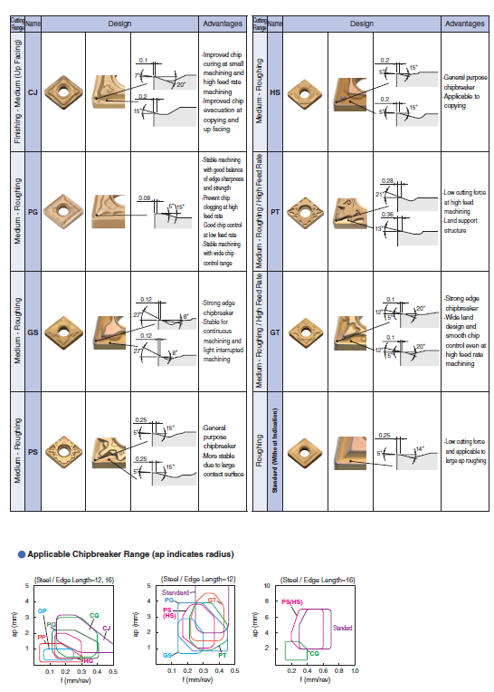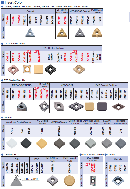 Có rất nhiều loại lưỡi dao tiện với hình dáng và lớp phủ phù hợp với các bước gia công khác nhau (tiện ngoài, tiện lỗ, tiện ren, cắt đứt…) và các loại vật liệu khác nhau nhằm đem lại hiệu quả tốt nhất. Vui lòng tham khảo các dòng lưỡi dao tiện KYOCERA dưới đây: